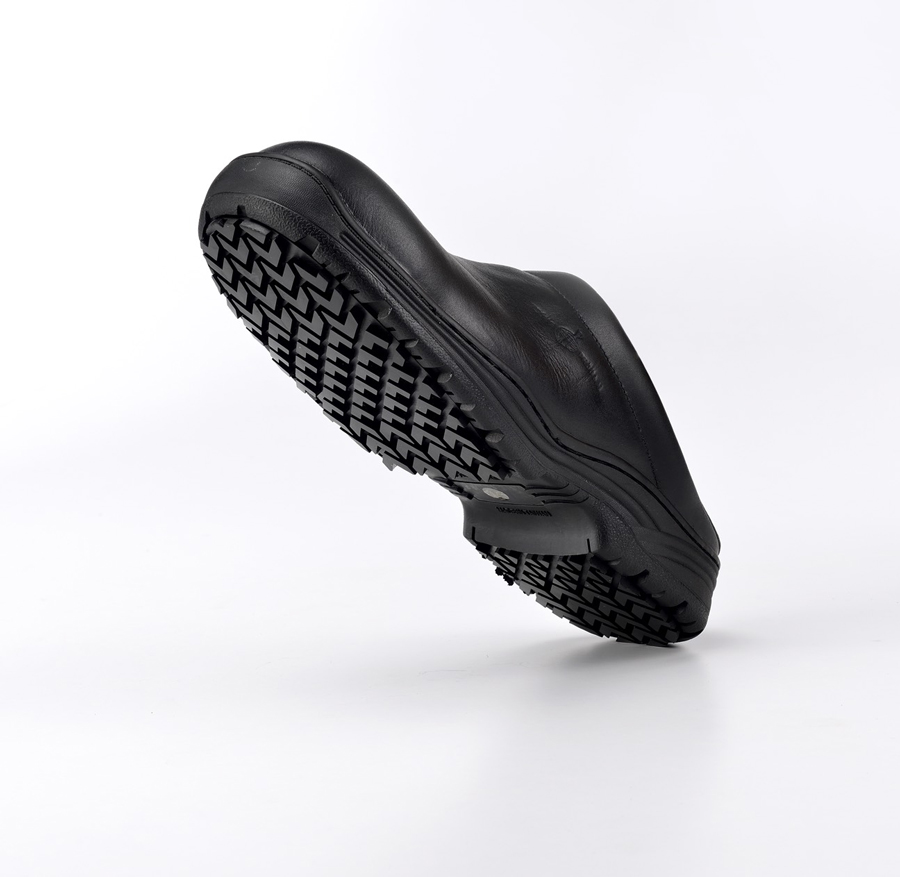 3.防潑水鞋面易於清潔:高密度防潑水材質一擦即淨、不易吸附油污,以維持整潔專業形象。