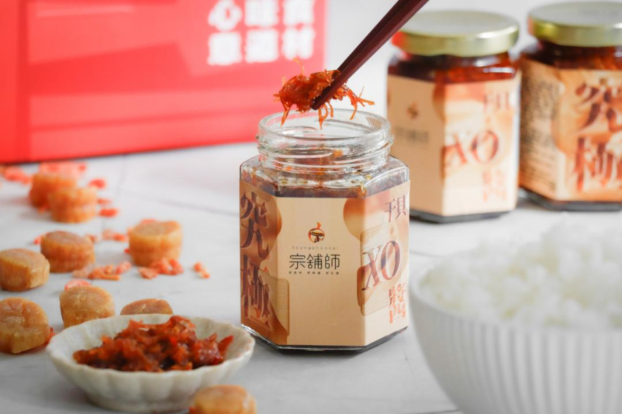 以金華火腿為醬料基底,融合干貝絲、開陽等珍貴海味,搭配紅蔥頭、大蒜及少量朝天椒與辣椒,依照主廚獨家黃金比例食譜,細火熬出濃郁香氣與多重鮮味。無論是作為水餃蘸醬、拌麵提味,或運用於炒飯、炒蘿蔔糕與各式熱炒料理,只需舀上幾匙,瞬間為家常菜色增添精彩。